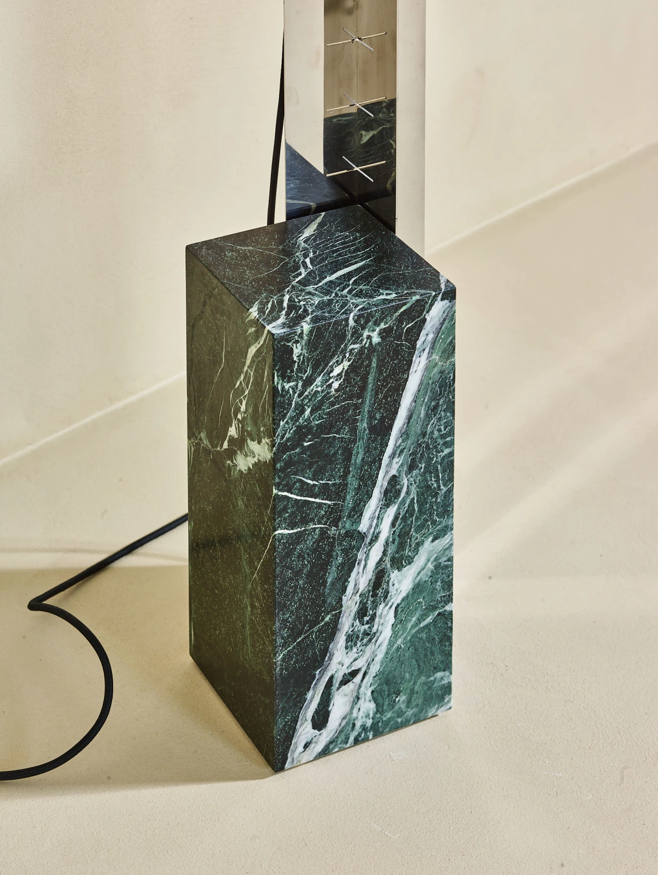Verde Alpi marble and travertine counterweight.