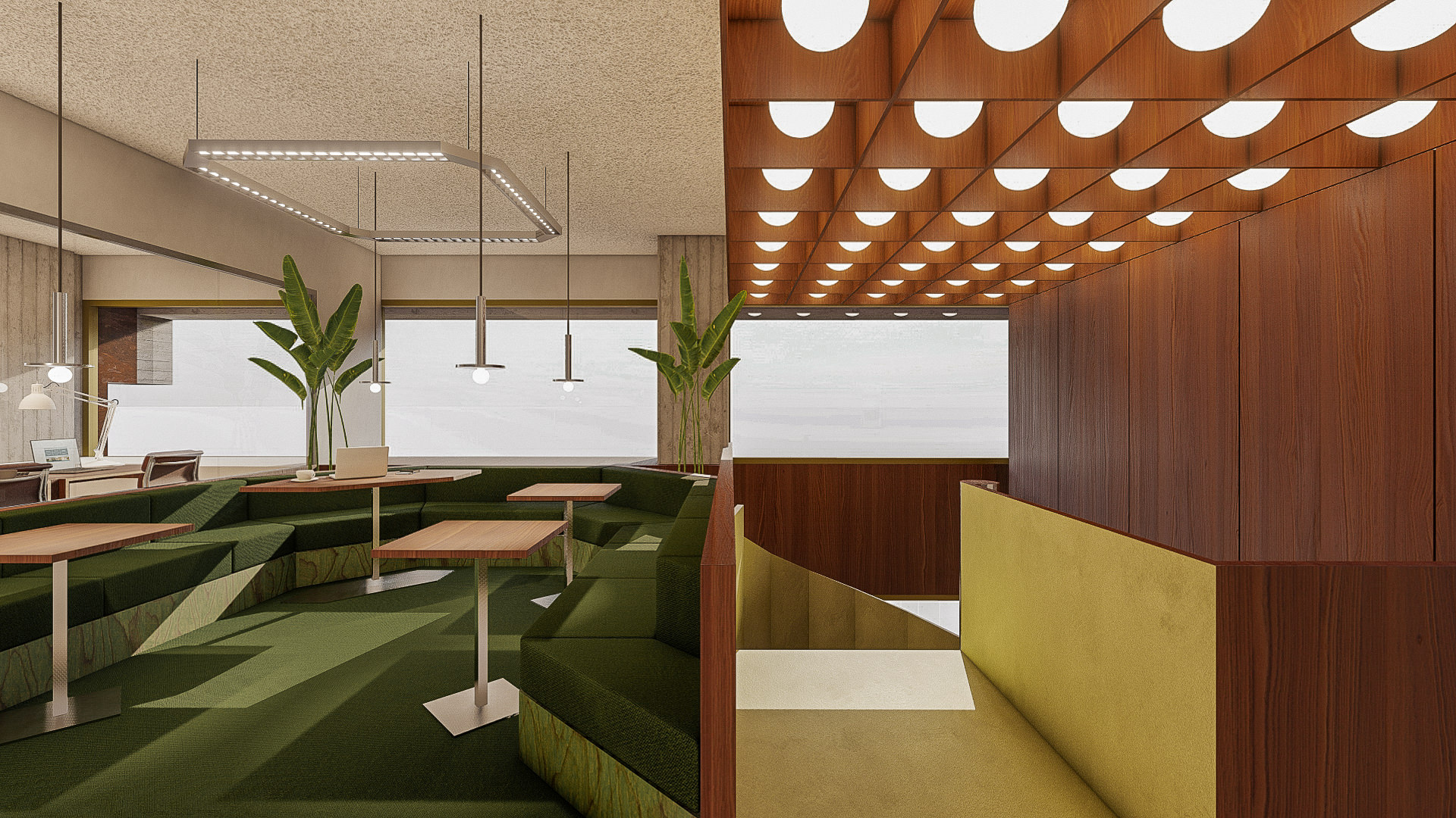 Every detail is carefully considered to enhance functionality and foster creativity. From the retro-futuristic vibe to the seamless integration of modern amenities, the co-working interior offers a unique blend of past and future, inviting occupants to explore, innovate and thrive in an architecturally rich environment.